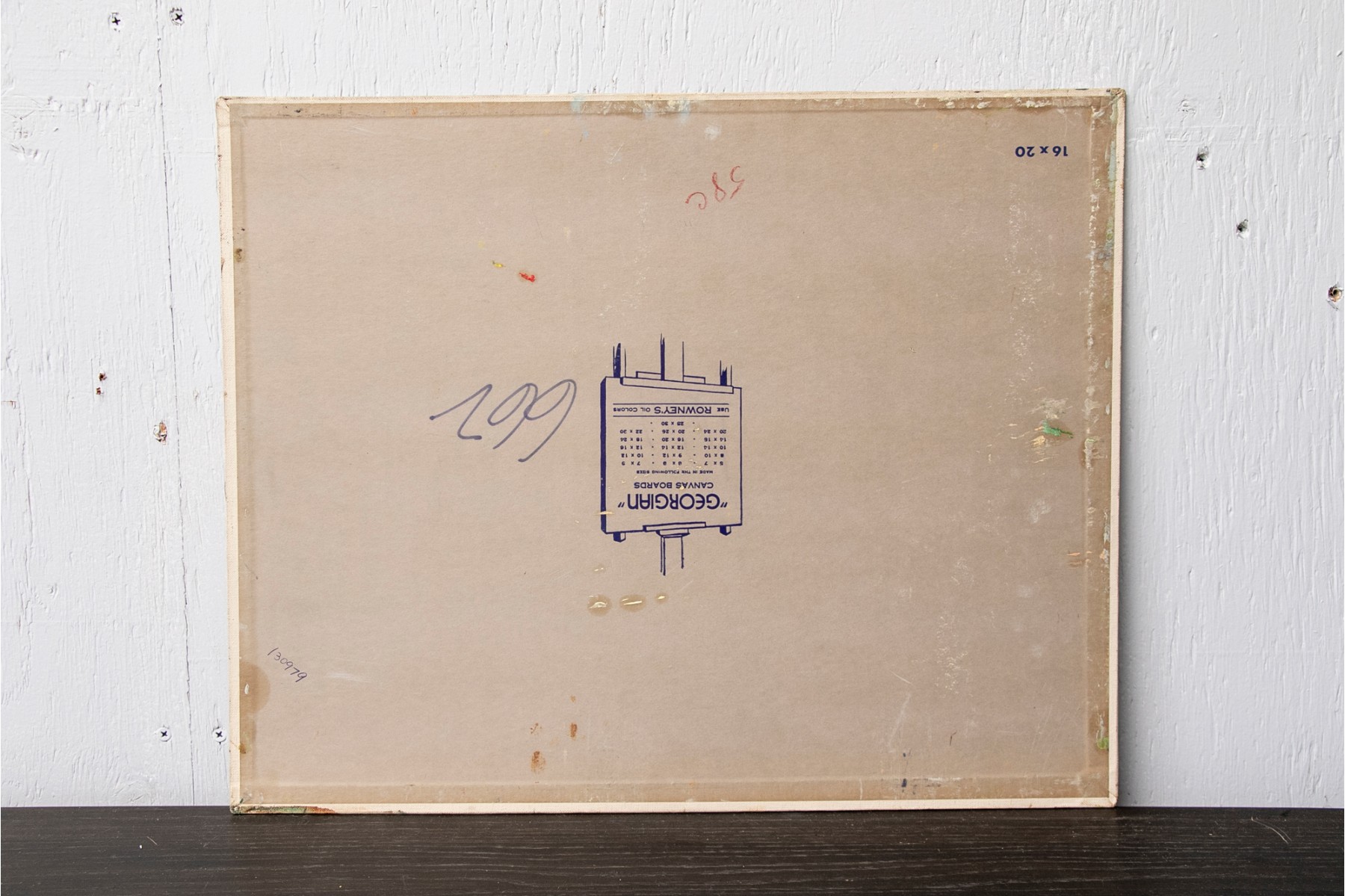 Condition: possible paint blip to lower right corner, wear around the perimeter.