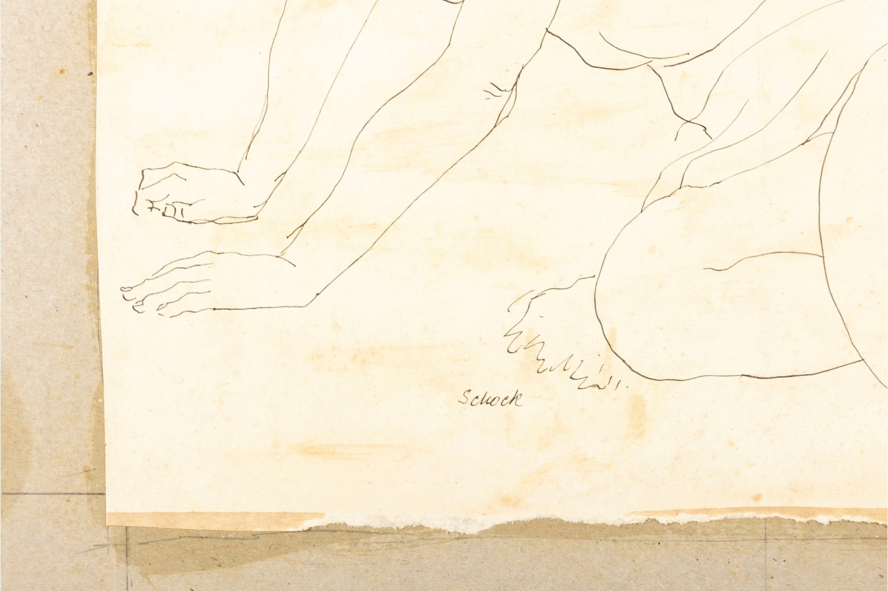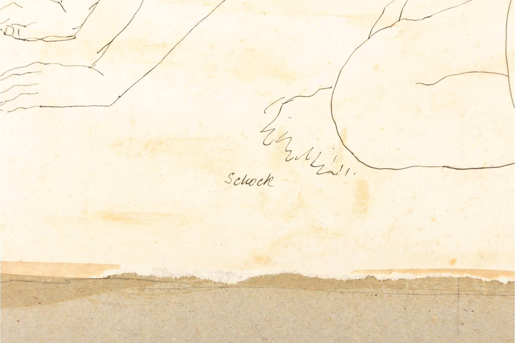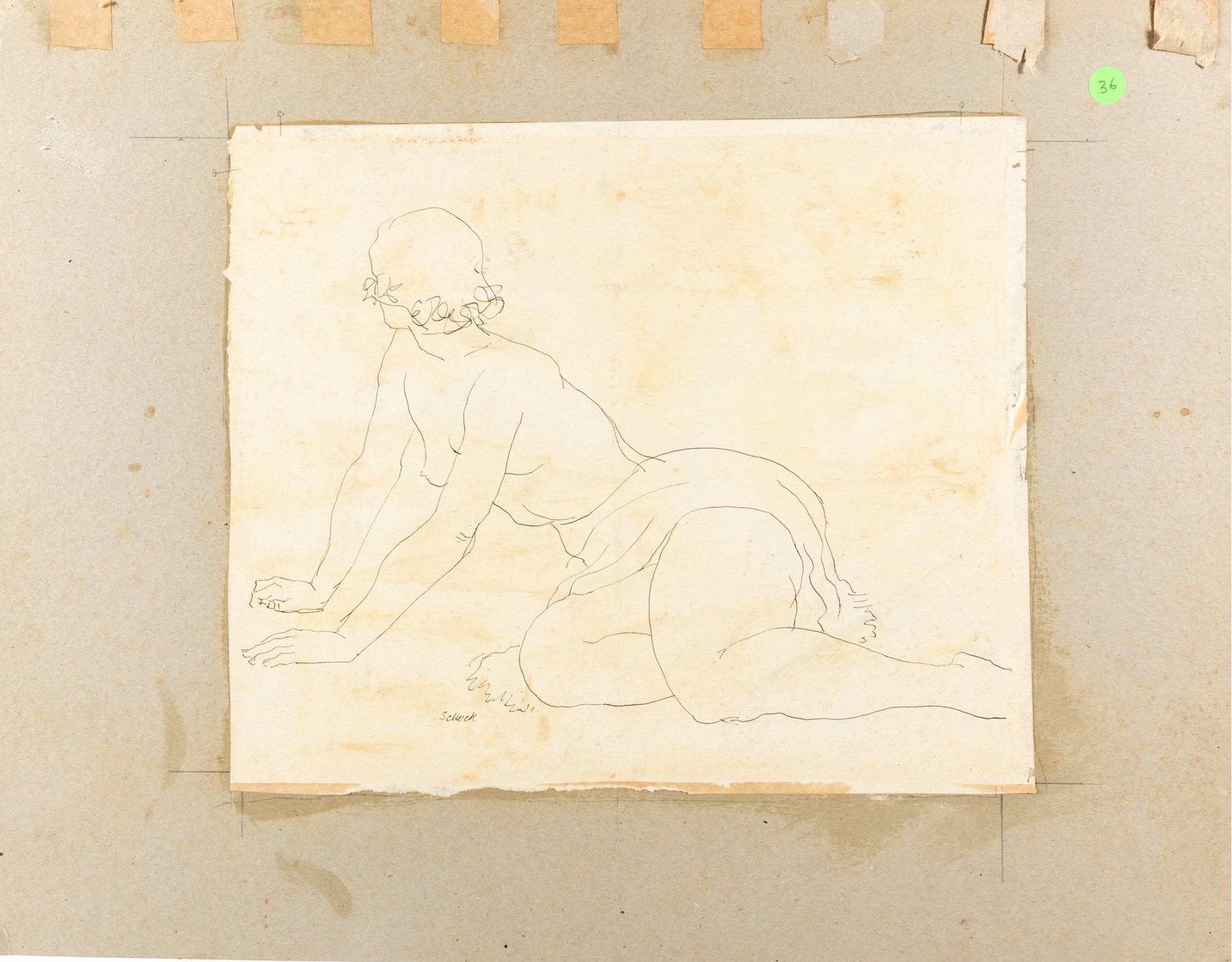 A nudist ink on paper sketch by American artist and professor William Shock of Cleveland, Ohio. Signed on the lower right corner. The piece is unframed and presented plainly with age and foxing present.