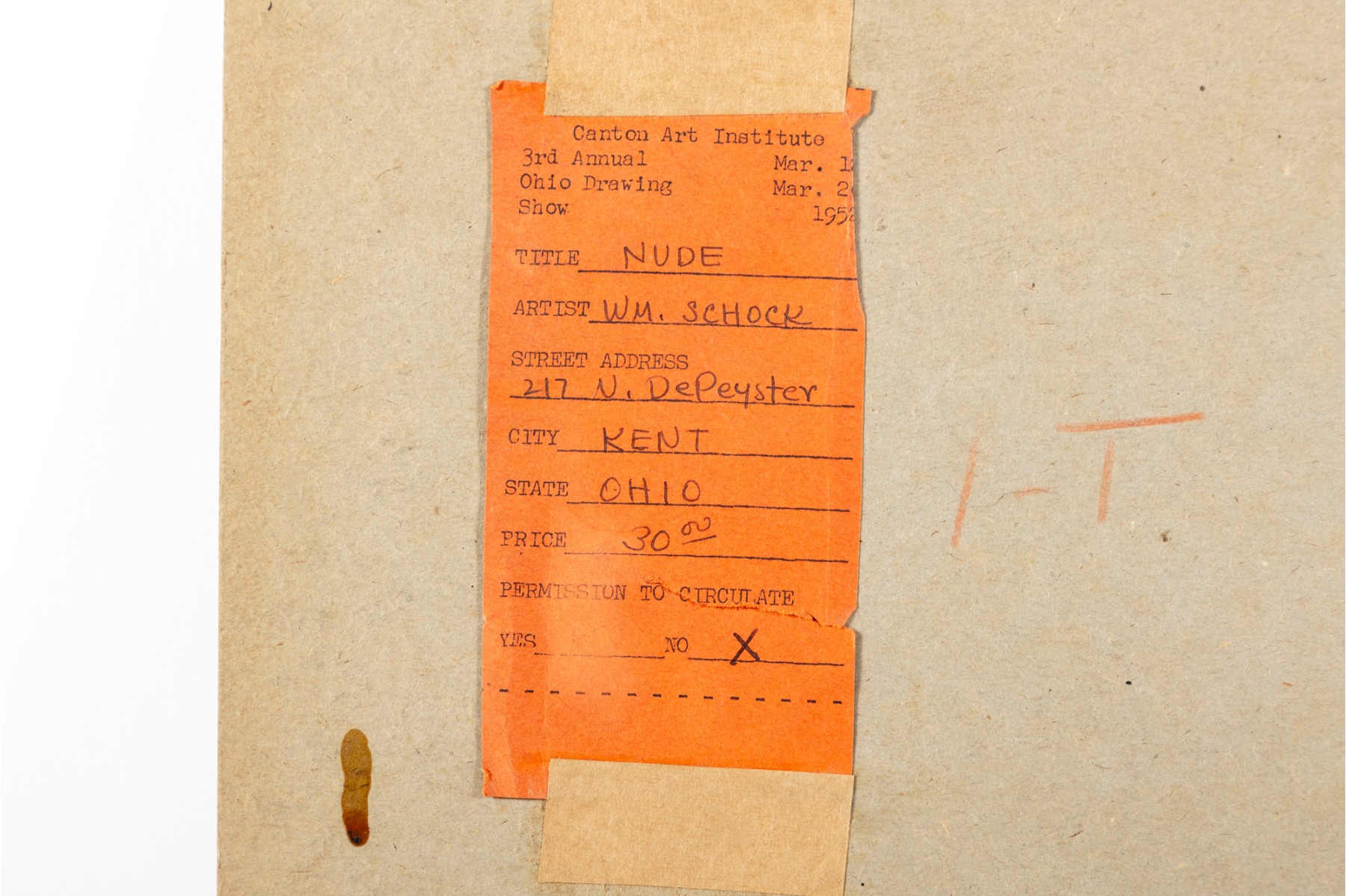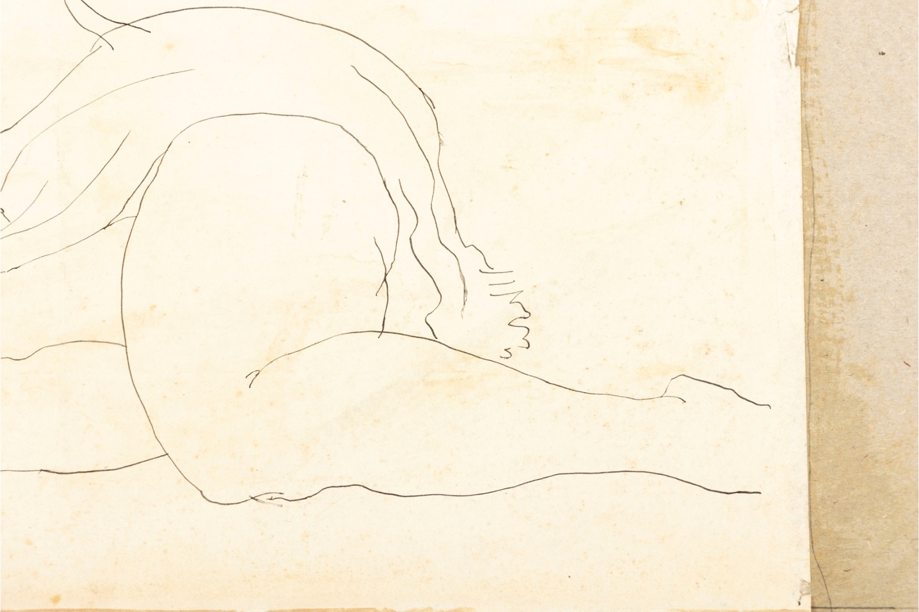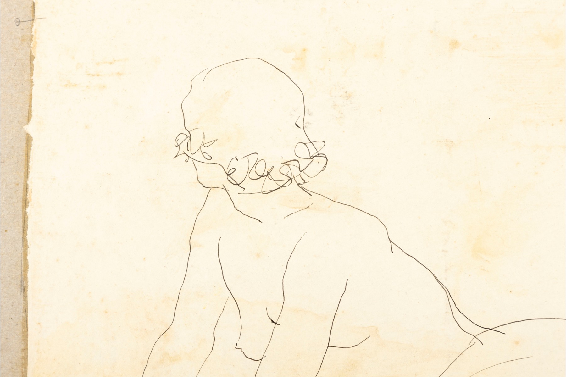 A nudist ink on paper sketch by American artist and professor William Shock of Cleveland, Ohio. Signed on the lower right corner. The piece is unframed and presented plainly with age and foxing present.