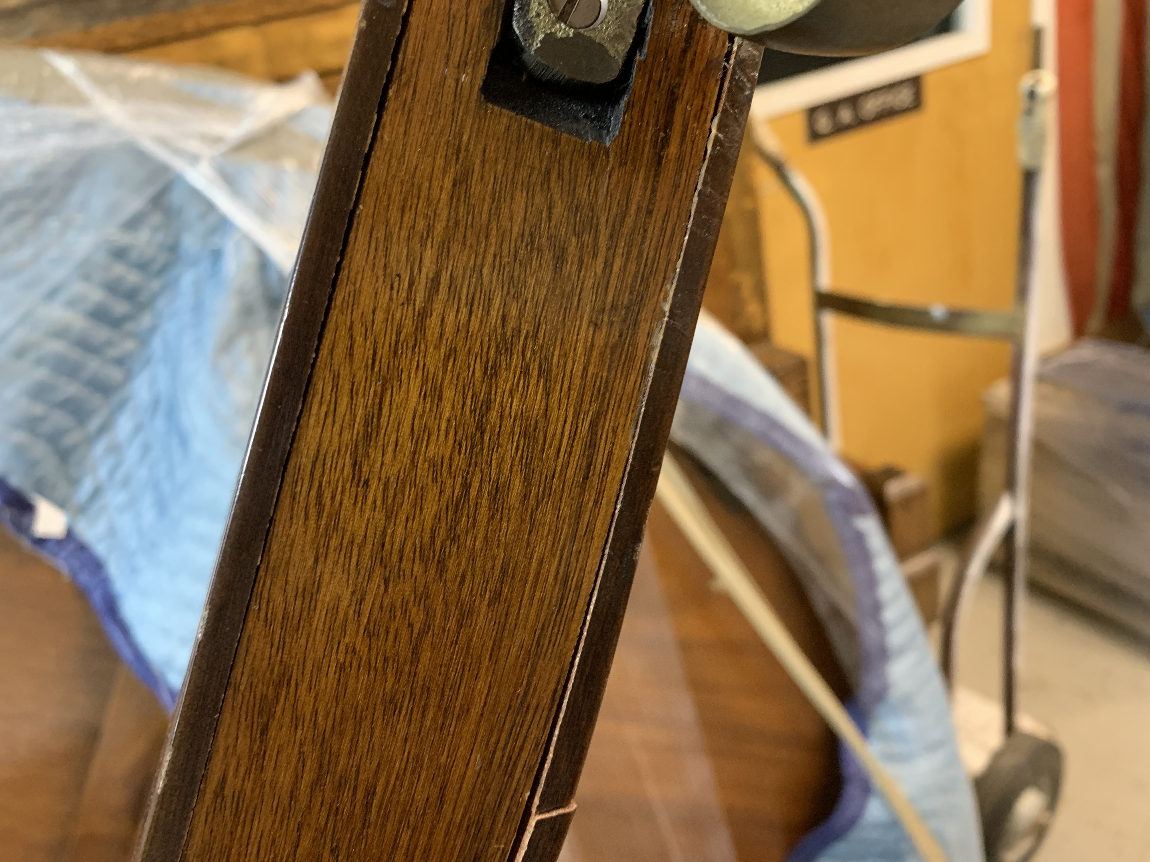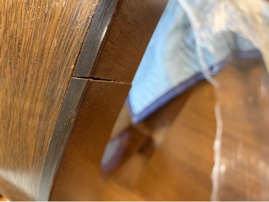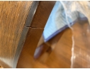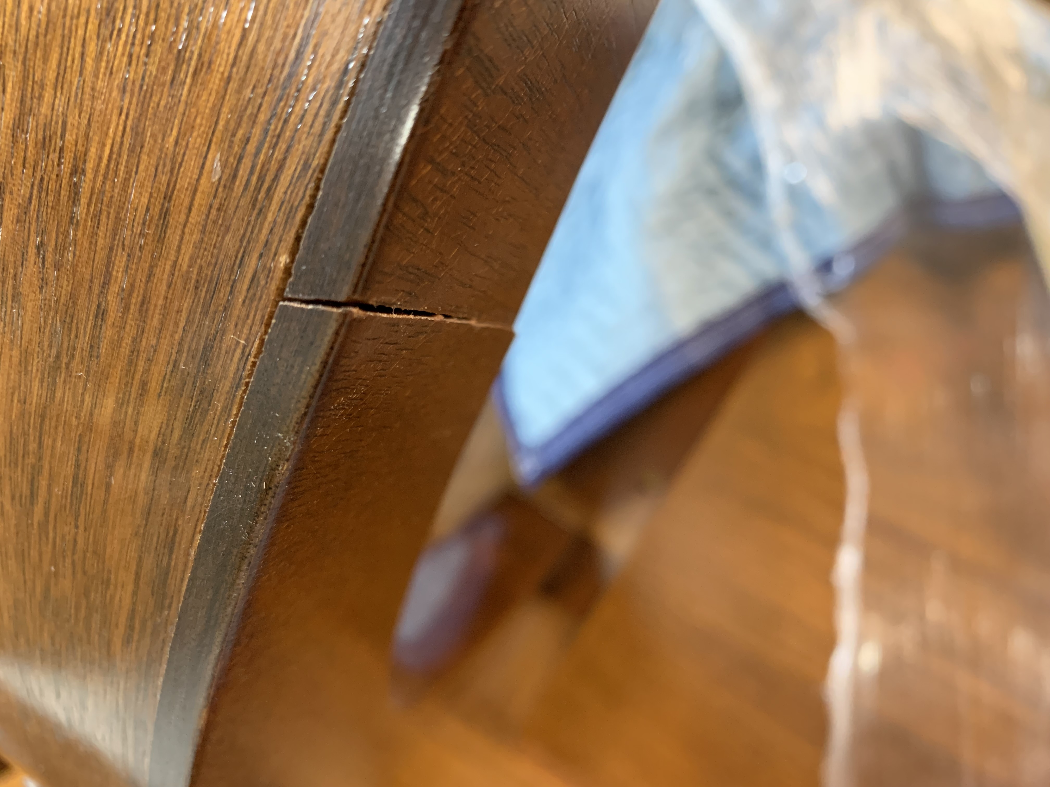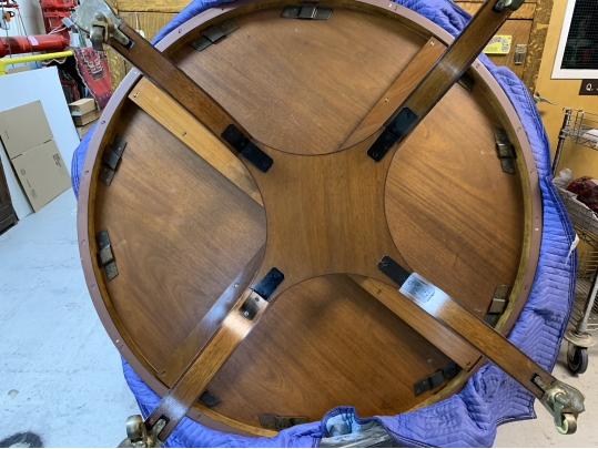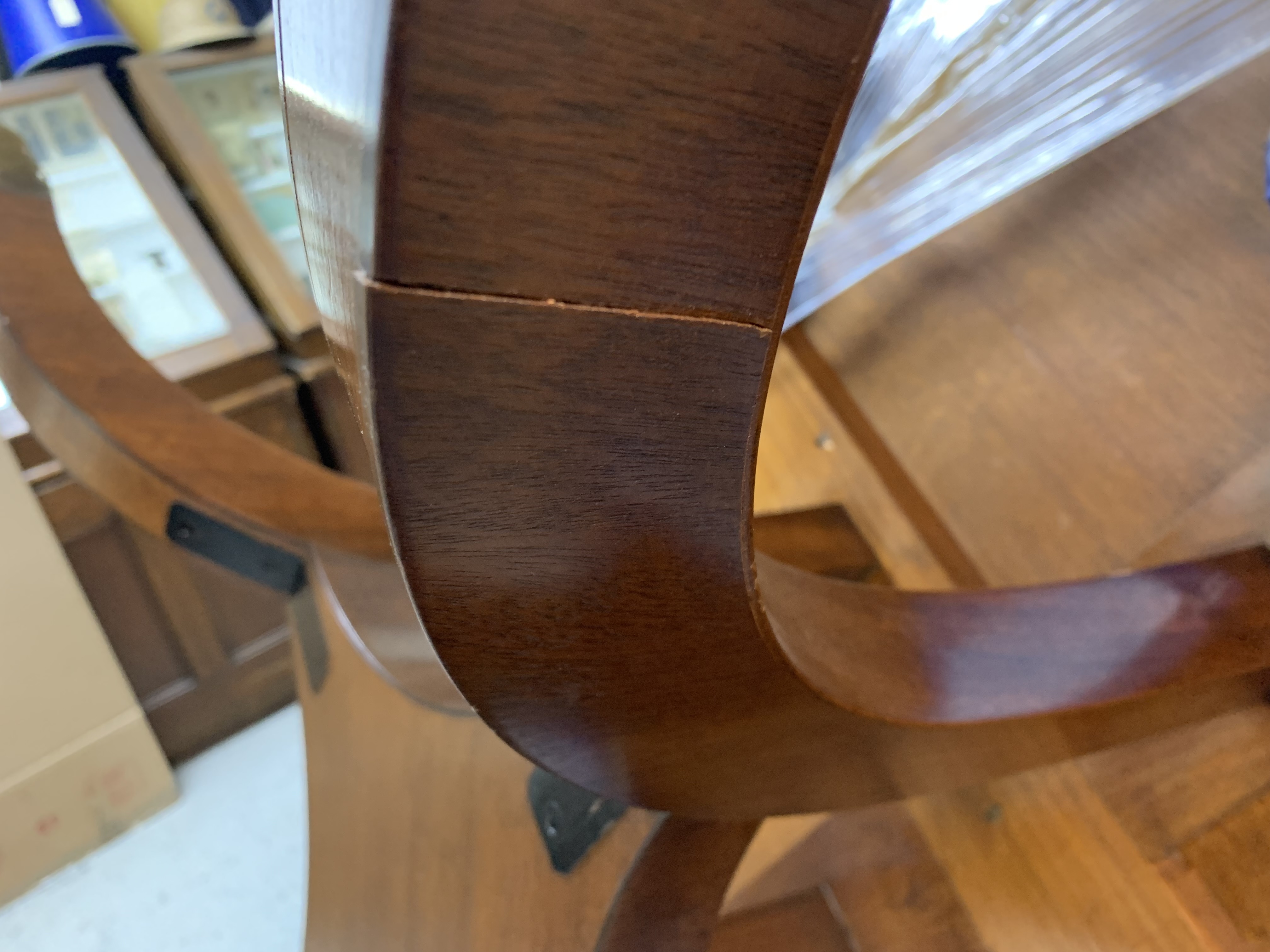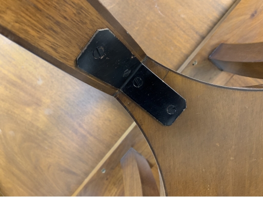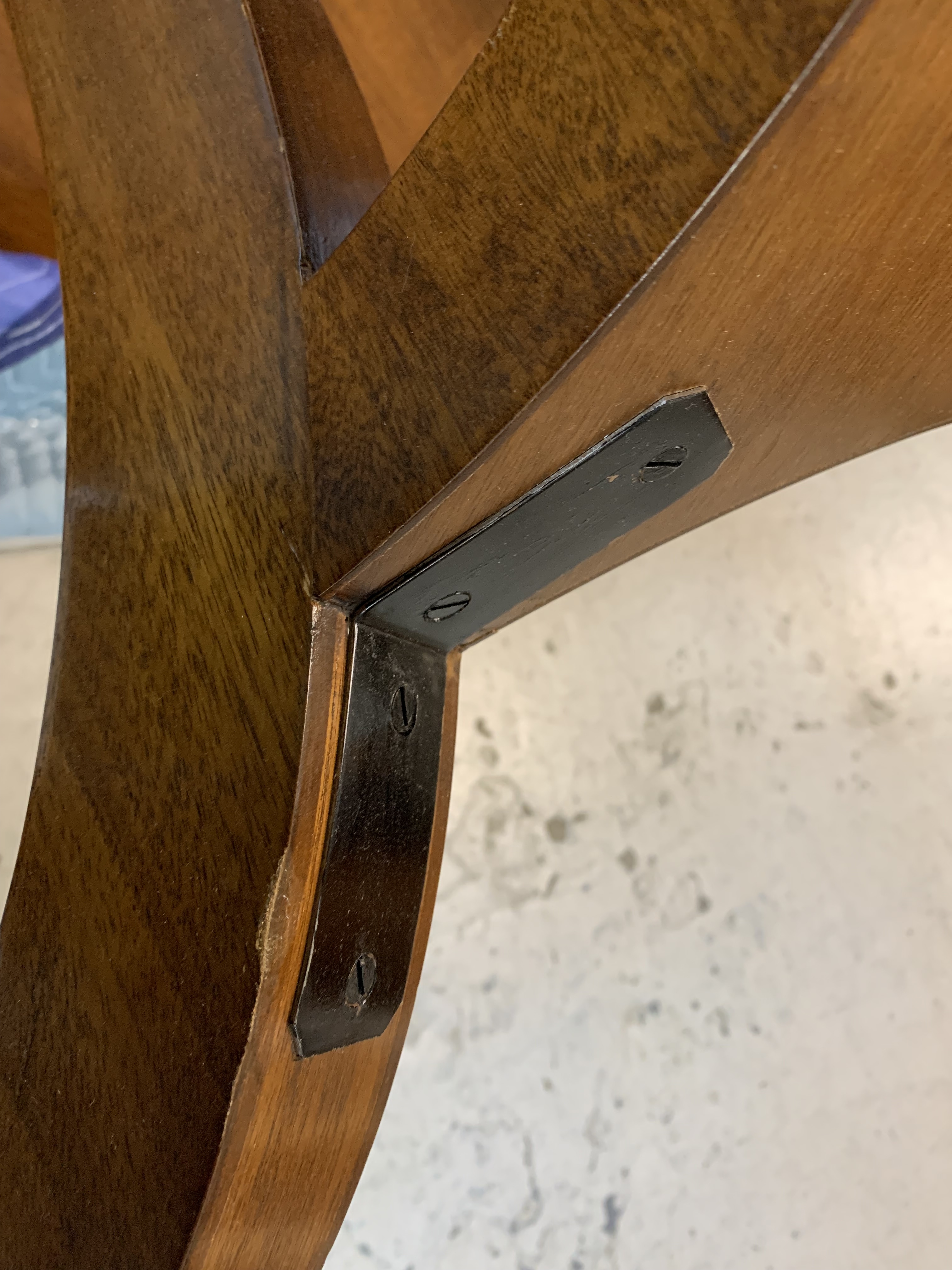 Condition: Please see detail photos. Please see detail photos. Various signs of age and use include an old veneer repair to leg as shown in the photos and does not detract from the overall presentation and functionality. Table is slightly sunned with leaves being a little darker, expected light scratches, nicks and rubs with gentle sunning and surface scuffs commensurate with care and gentle handling.