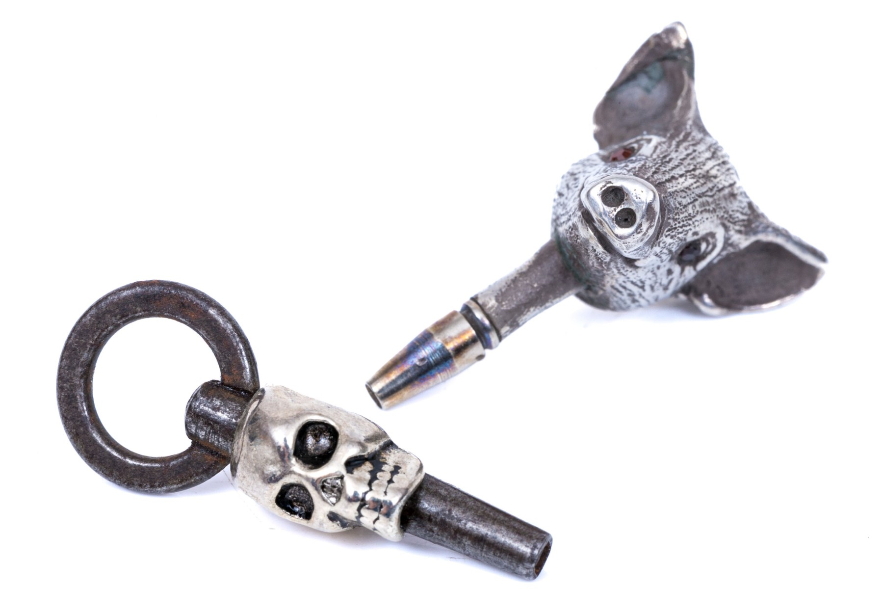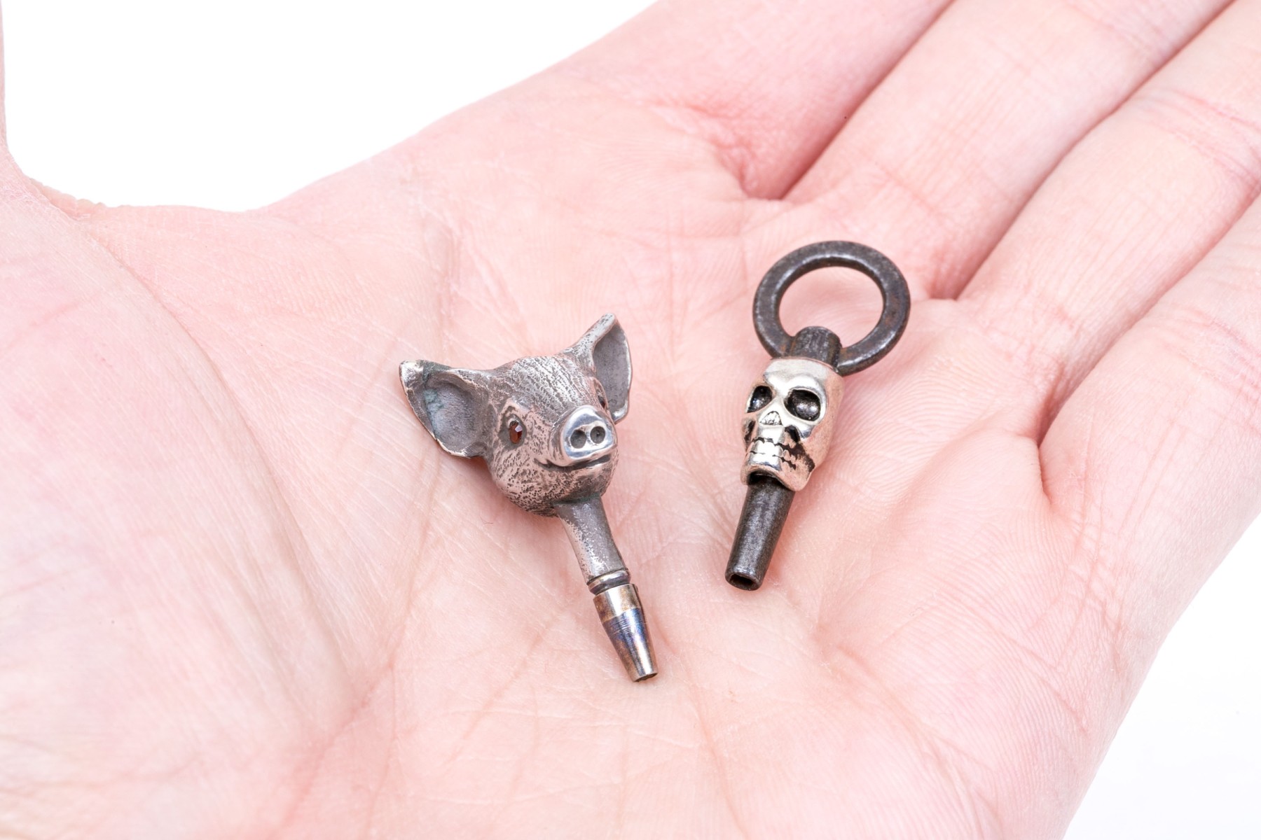 Wonderful antique pigs head and vintage memento mori figural pocketwatch keys