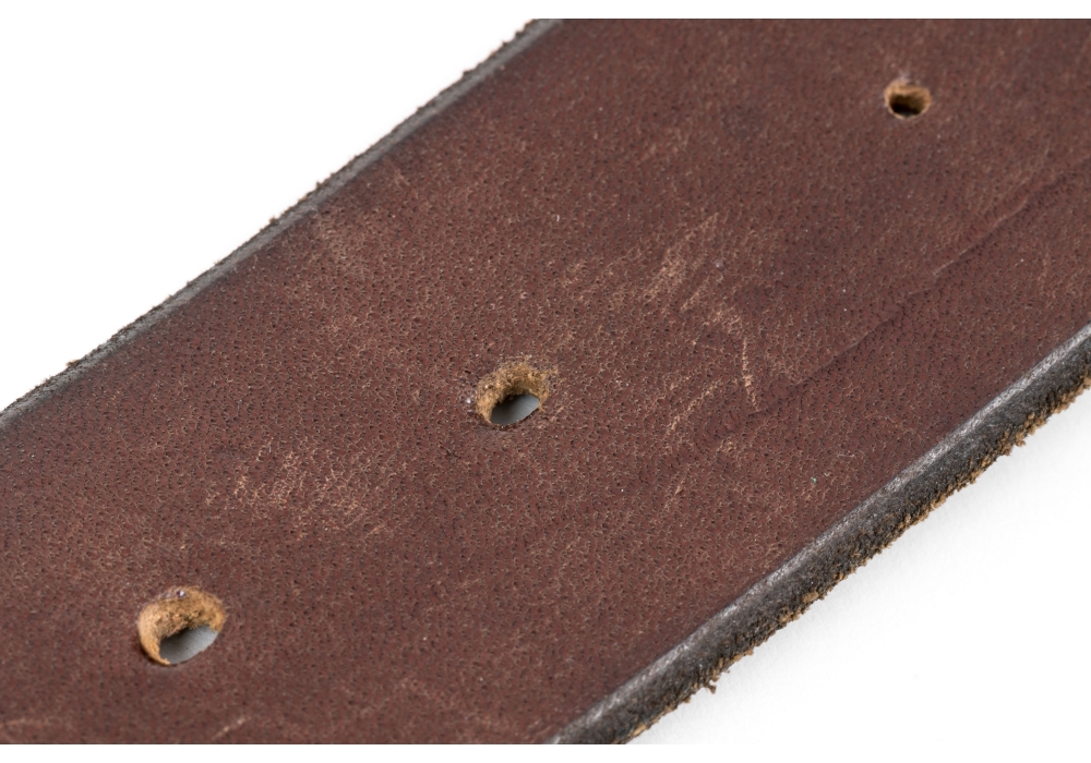 Size: 40 1/2" long; adjustable 31" to 37" long x 1 7/16" wide, 2 9/16" wide at buckle