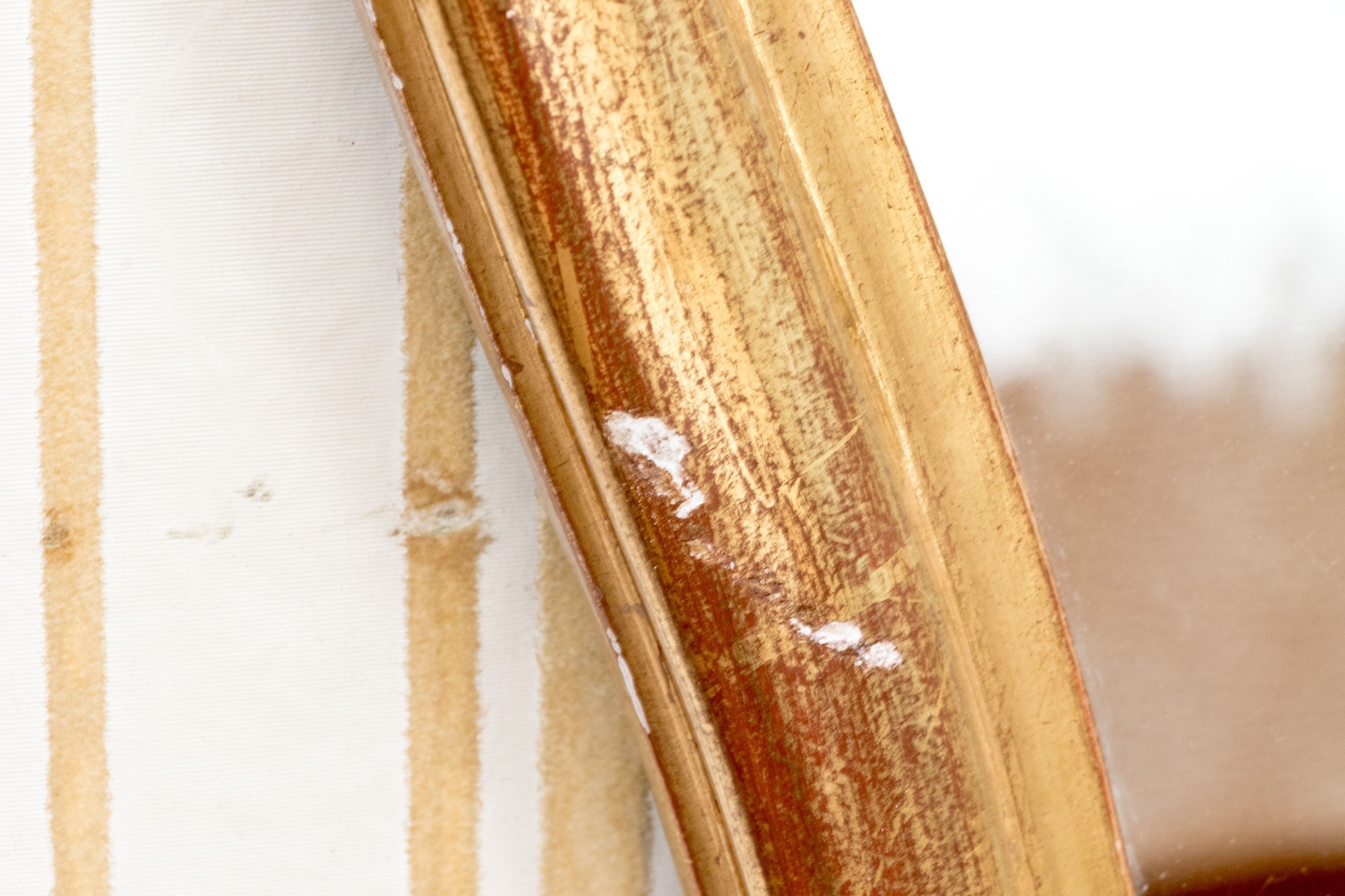A beautiful mirror overall. Wear to the finish with paint spots and chips to the gilt finish.