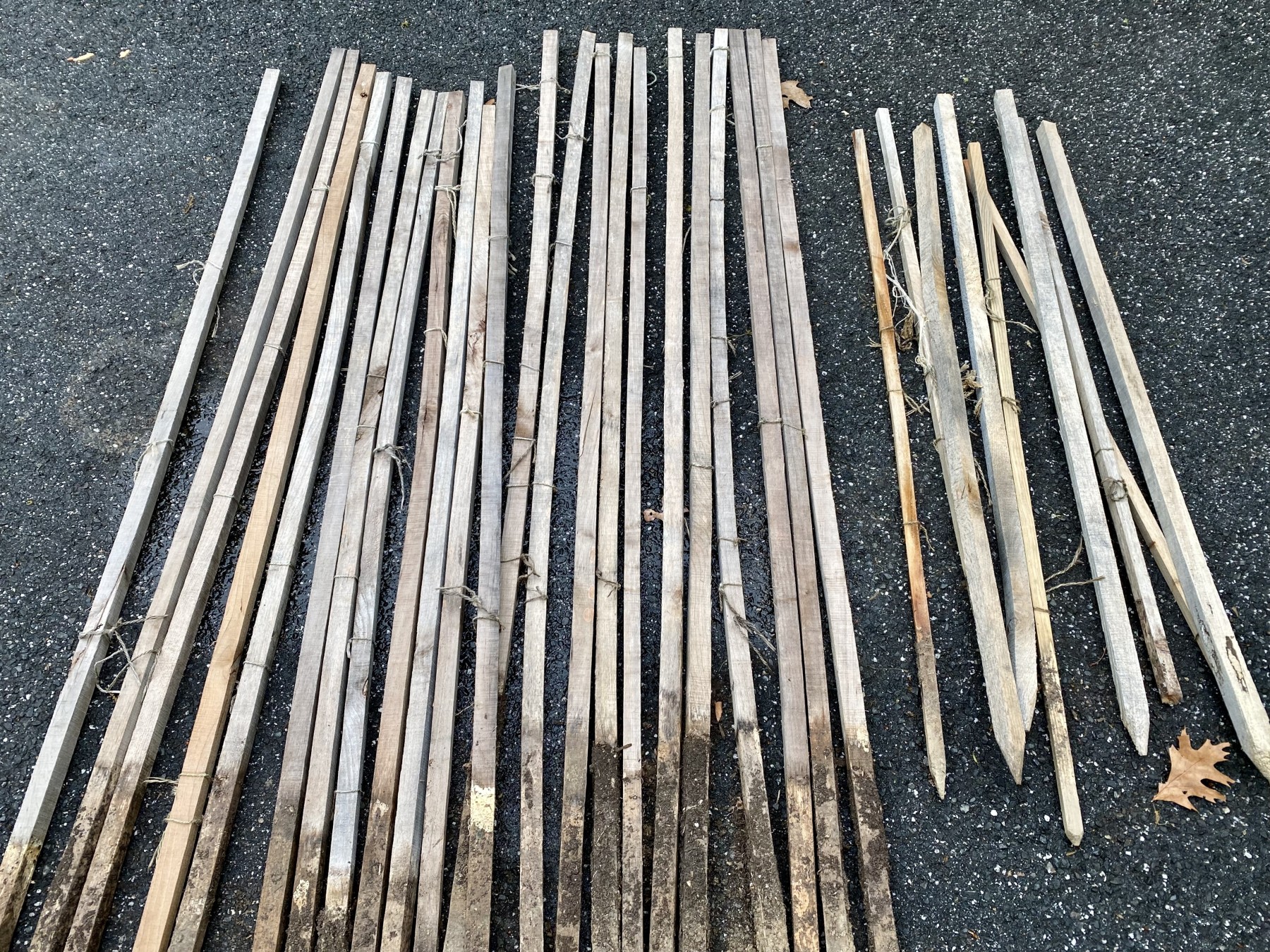 Comprised of nine 42" stakes and twenty-three stakes ranging from 68"-72."