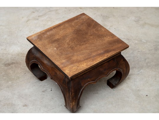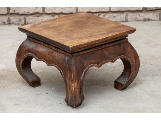 A Ming-style plant stand featuring a gracefully curved design and intricate detailing. Crafted from hardwood with a rich finish, it showcases traditional Chinese influences with carved legs which scroll into a decorative apron.