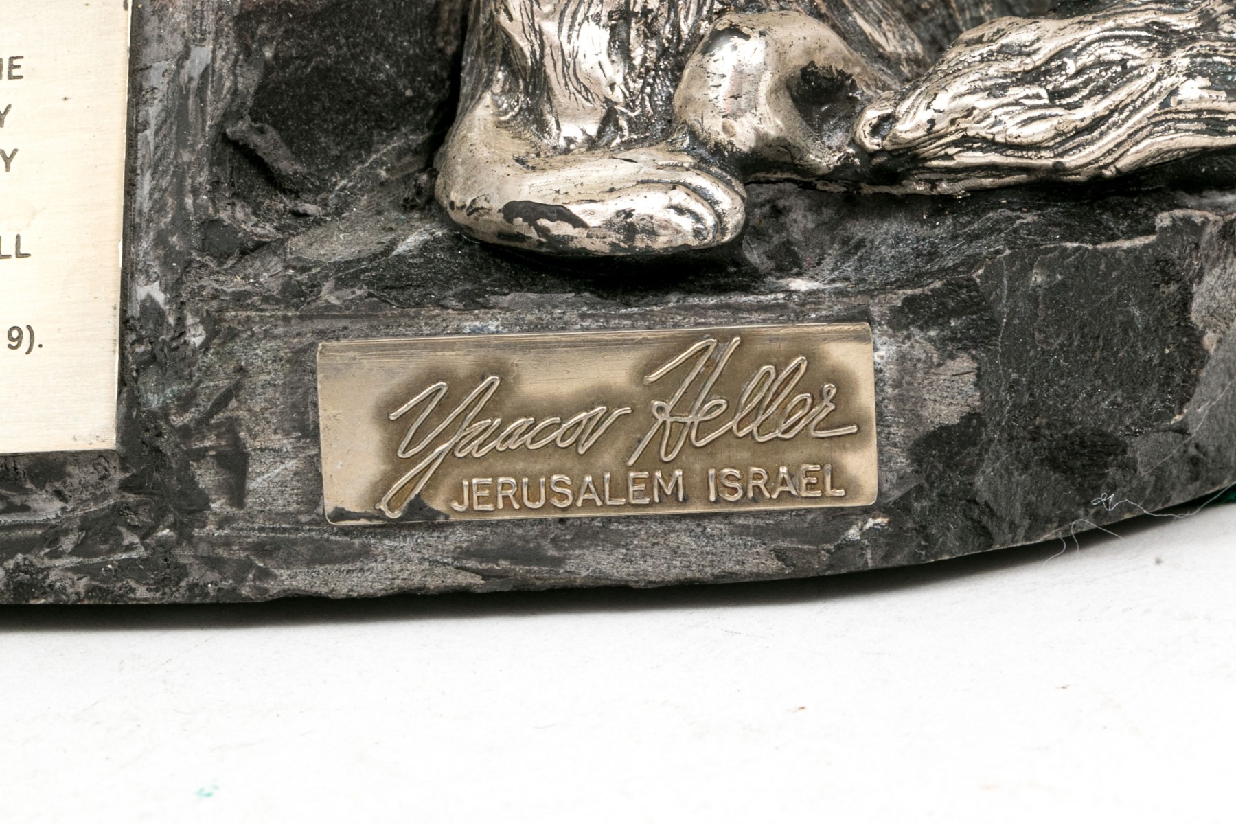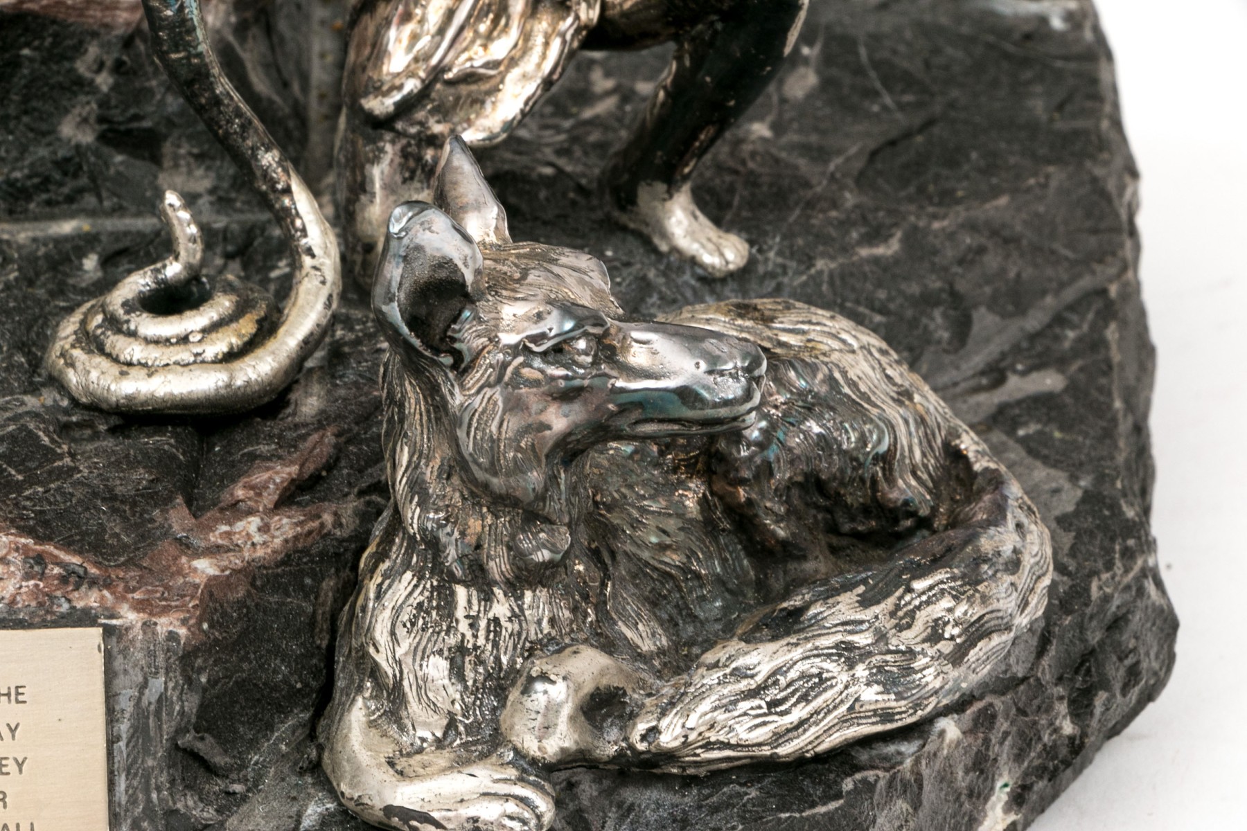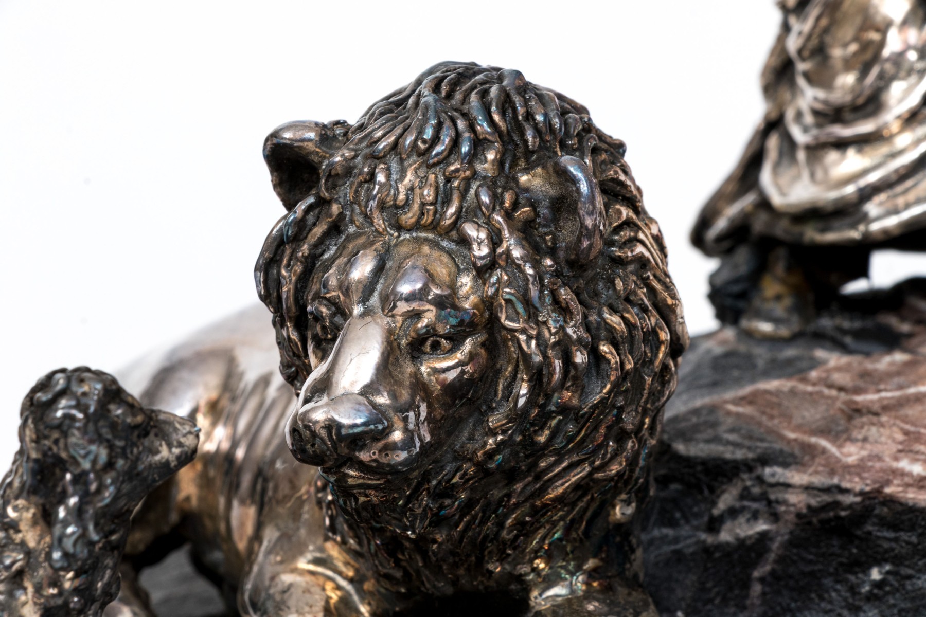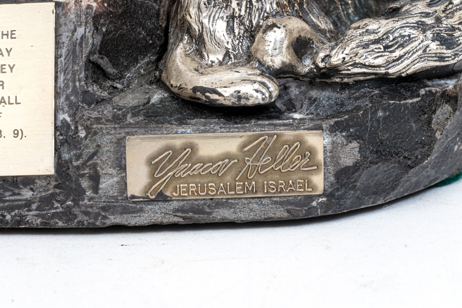 Yaacov Heller iconic Lion and the lamb Sterling Silver Clad Biblical Sculpture, set on a marble plinth.