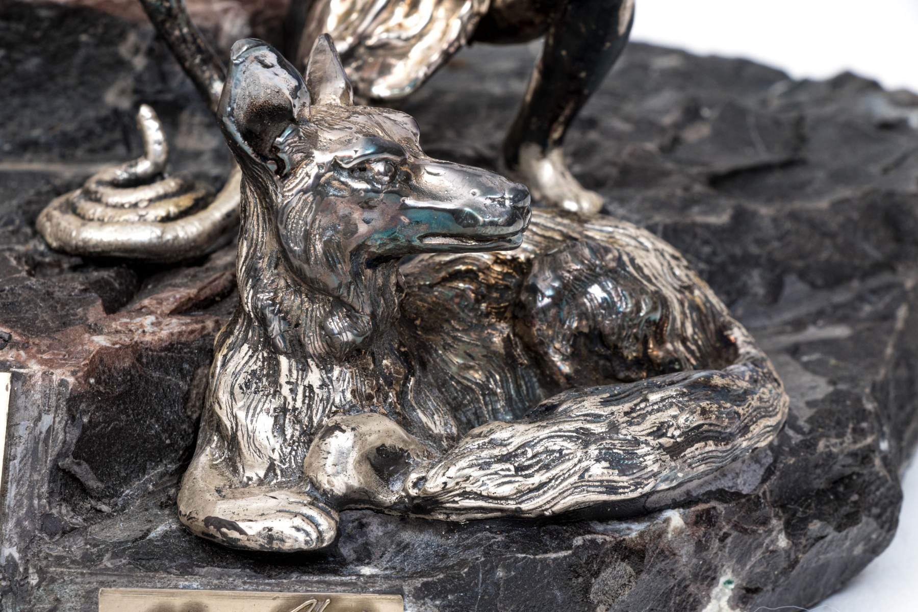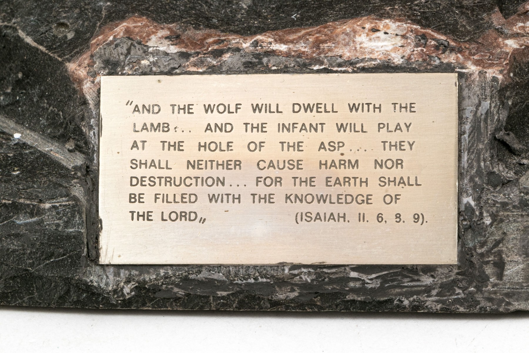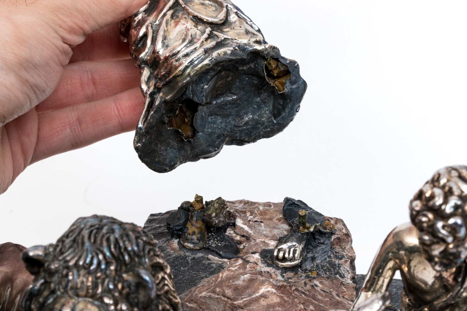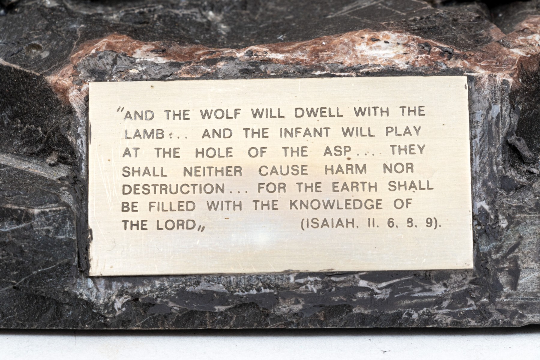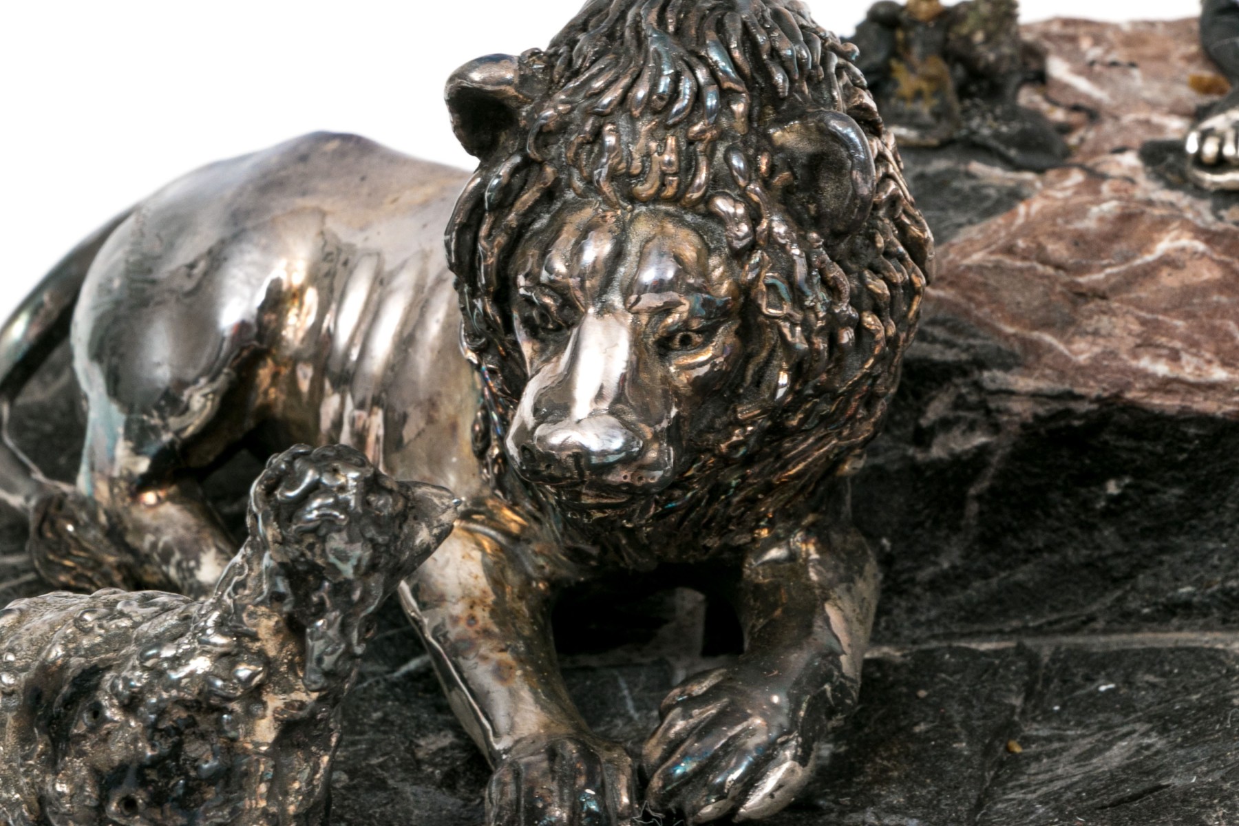 Yaacov Heller iconic Lion and the lamb Sterling Silver Clad Biblical Sculpture, set on a marble plinth.