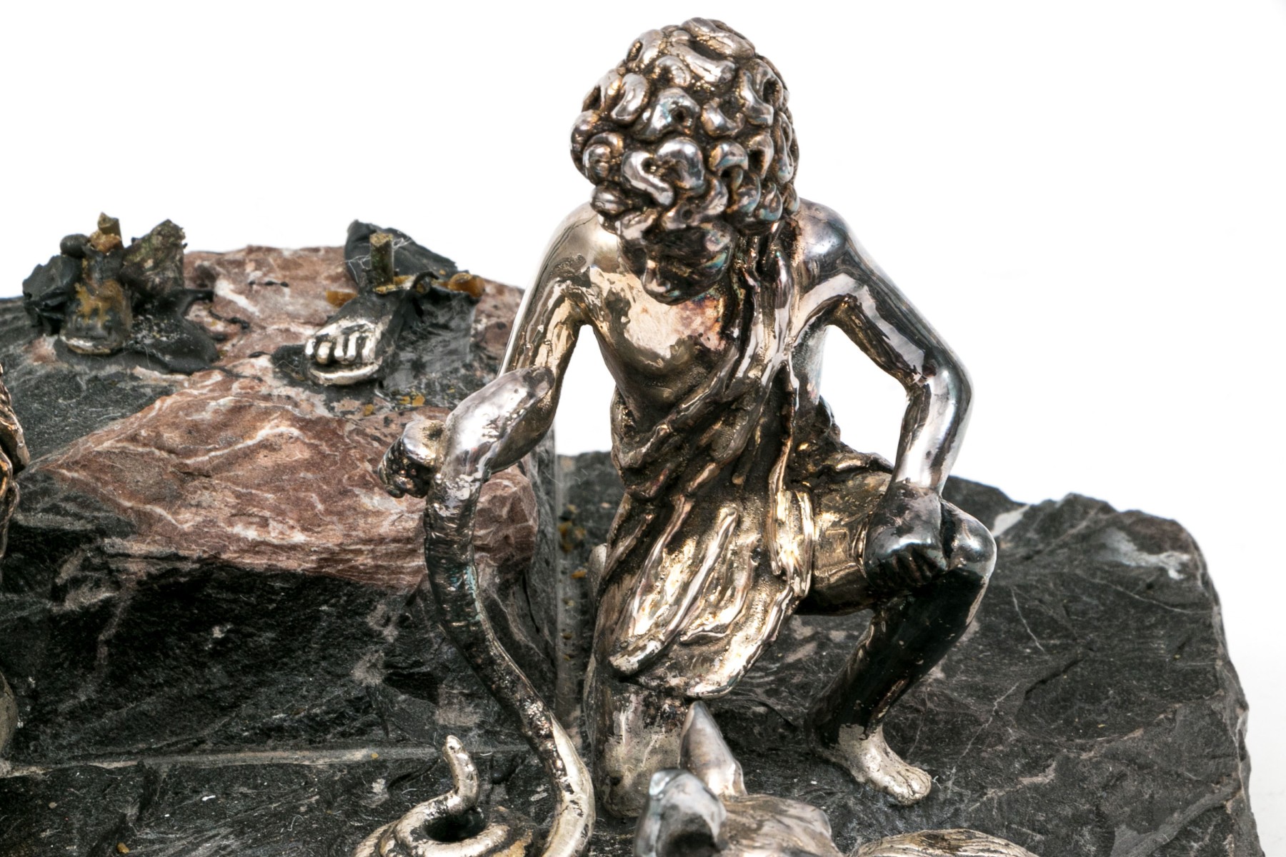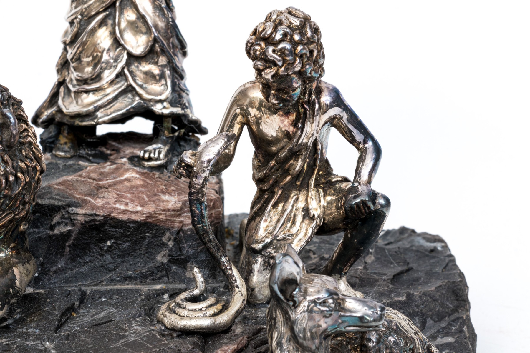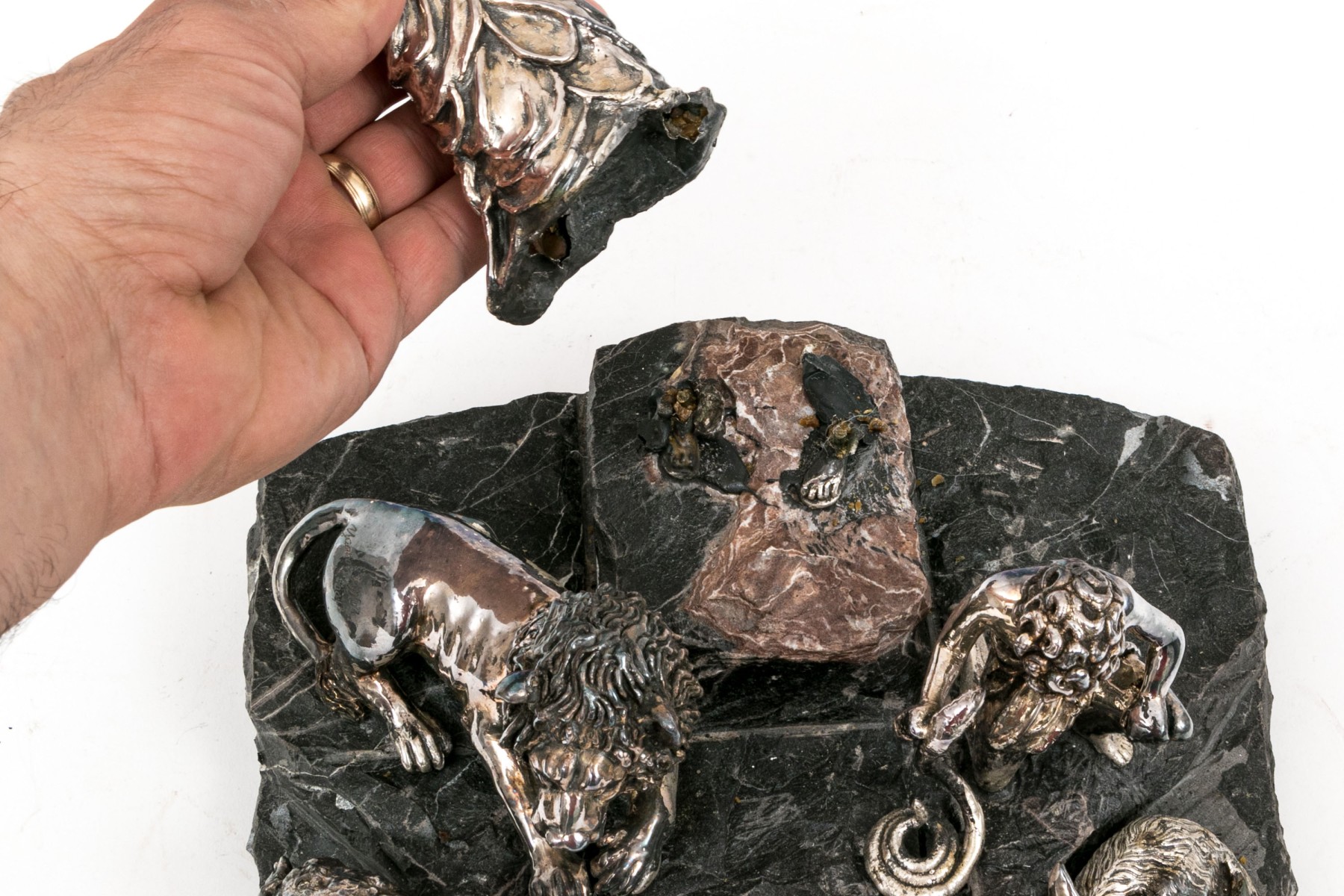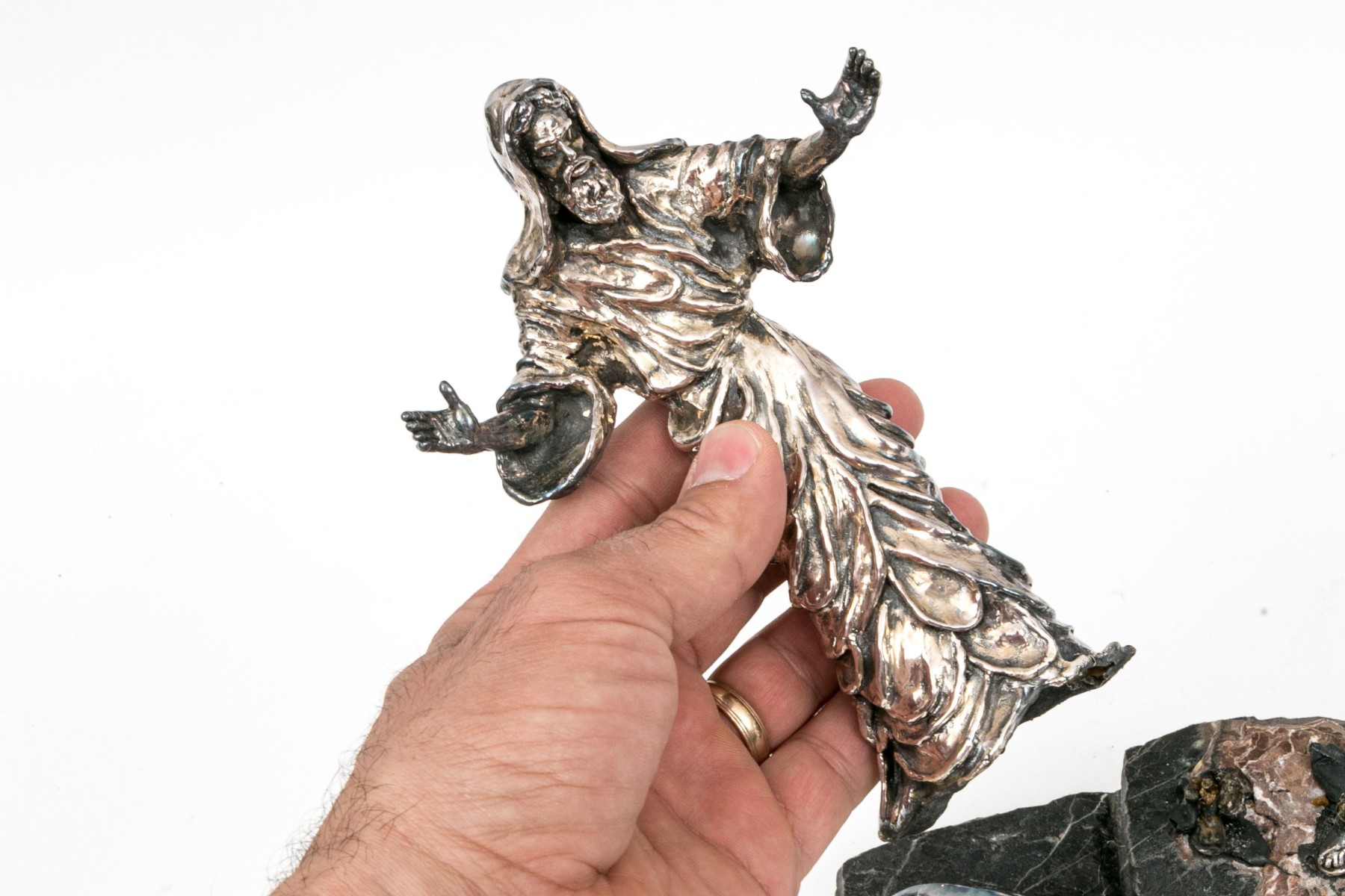 Yaacov Heller iconic Lion and the lamb Sterling Silver Clad Biblical Sculpture, set on a marble plinth.