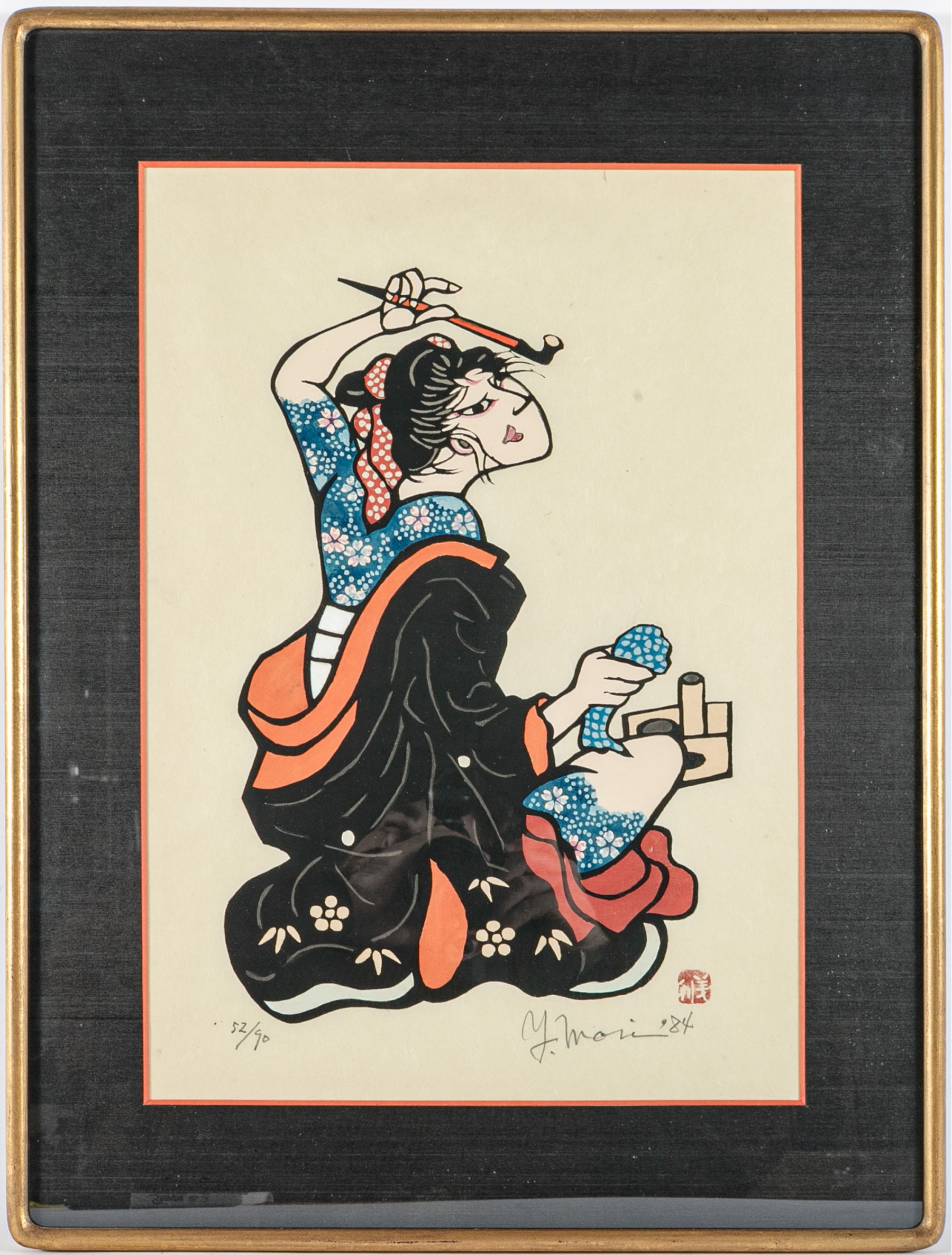 Yoshitoshi Mori (Japanese, 1898-1992) "Benten Kozo" Signed Woodblock #300654. Black Rock Galleries provides high end estate liquidation services through online estate auctions and a 50,000 sq ft designer showroom. estate liquidator, estate sale, online auction, antiques, fine art, liquidation, clean outs, auction, consignment, interior design, fine jewelry, collectibles, appraisals, estate appraisals, estate services, decor, furniture, furniture consignment, antique center, consignment shop. We offer appraisal services and specialize in fine art, jewelry, antiques and decorative arts. Sell with us. Black Rock Galleries is the tri-state's largest estate liquidator serving New England and the greater New York City area. We are the trusted source for expert appraisals, auction services, estate sales, and consignments. Black Rock Galleries is the east coast's largest and most trusted estate liquidator, with locations in Connecticut, greater Boston, MA and Raleigh, NC, Fairfield, Southport, Apex, TX. We are the best source for expert appraisals, auction services, estate sales and consignments. We have served thousands of families and estates with compassion, professionalism and expertise. BRG works with attorneys, executors, realtors and families to bring the greatest return on personal and estate property in the current market. Our unique combination of services make us the easy choice to get the job done in a timely and stress-free manner. We are with you from the initial consultation to the final clean out. Our house-built online auction software platform offers clients a dynamic approach to liquidating their personal property. This venue is most successful in bringing the best return with the least amount of disruption for our clients. See our services page for a complete description of this offering. Yoshitoshi Mori (Japanese, 1898-1992) "Benten Kozo" Signed Woodblock #300654