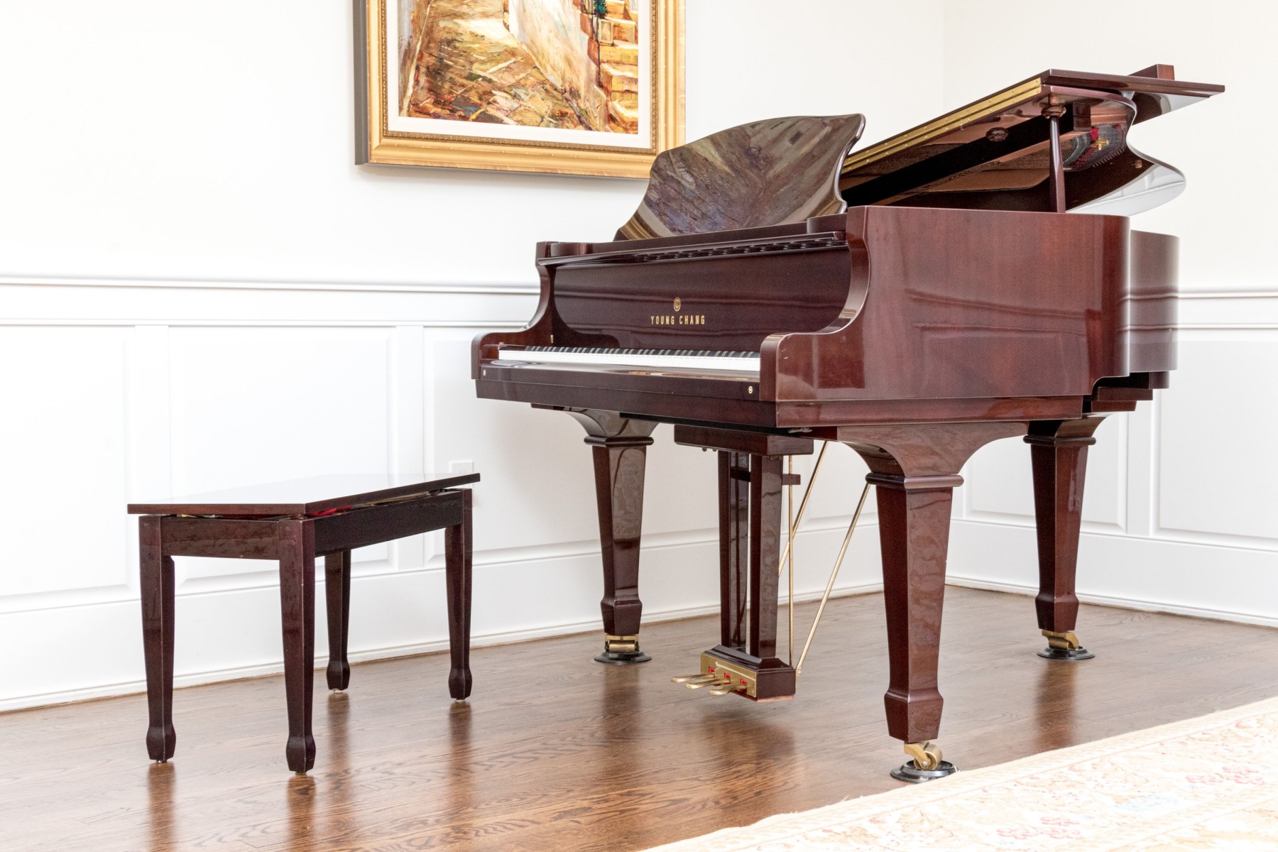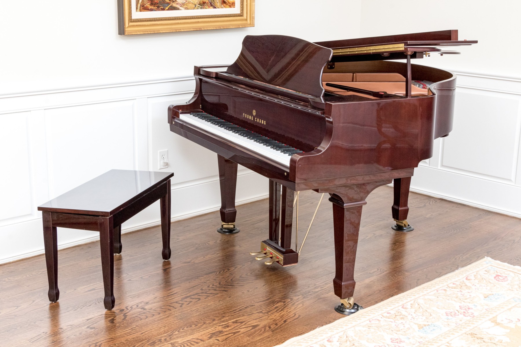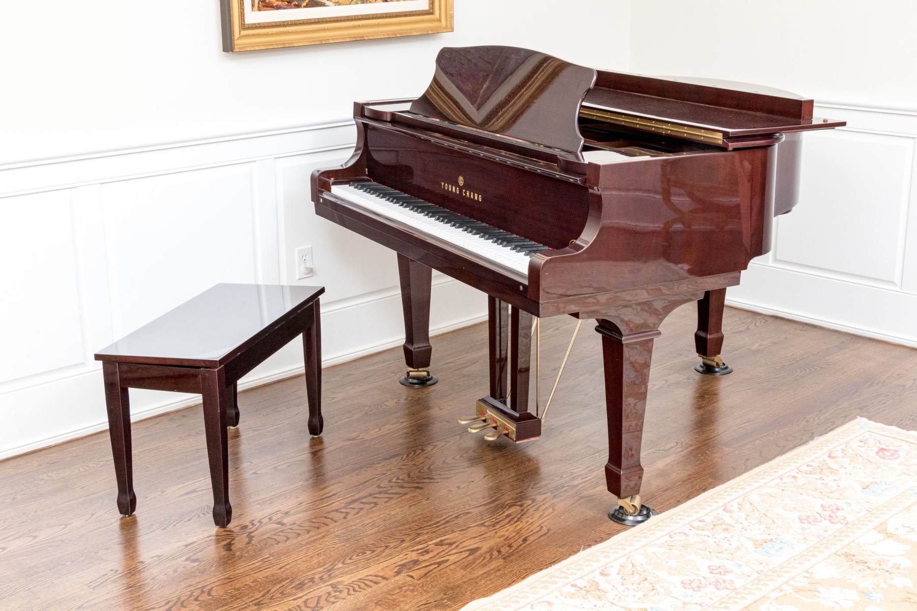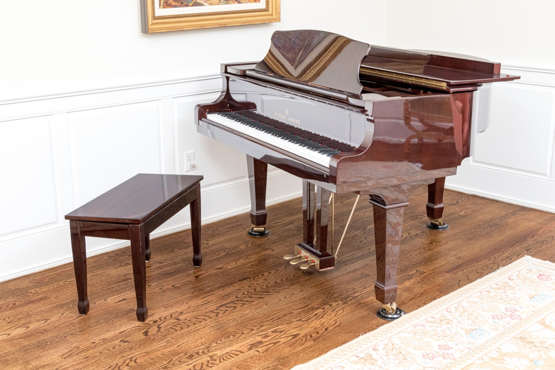 Young Chang Lacquered Mahogany Baby Grand Piano With Piano Bench
