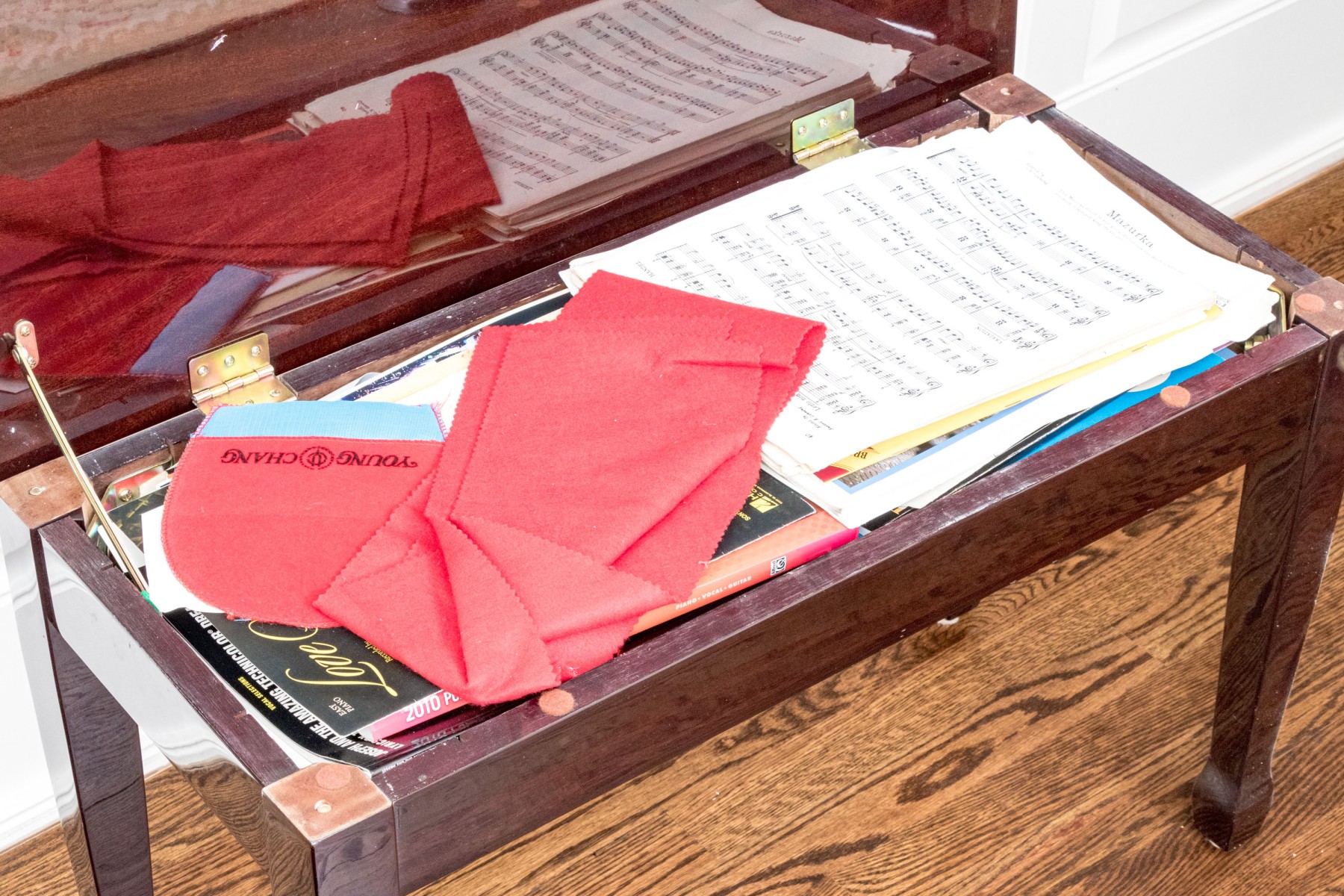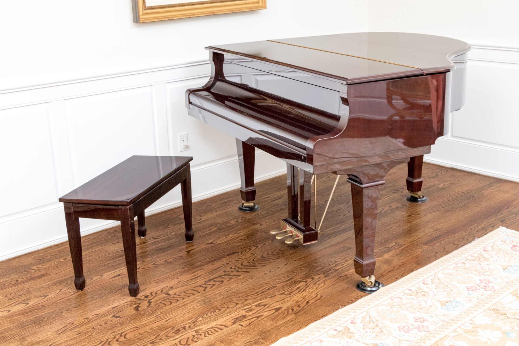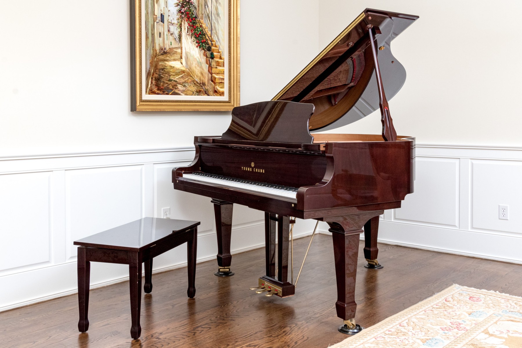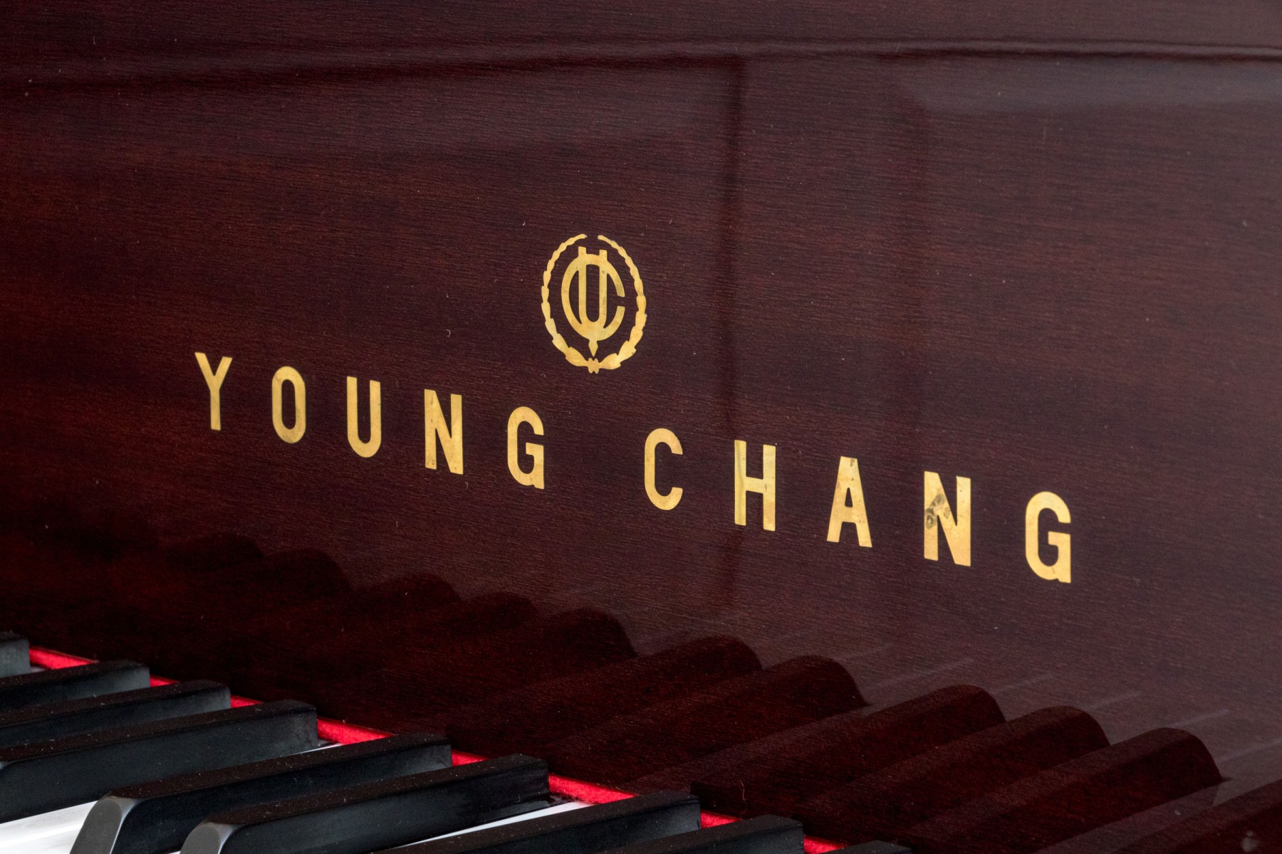 Young Chang Lacquered Mahogany Baby Grand Piano With Piano Bench