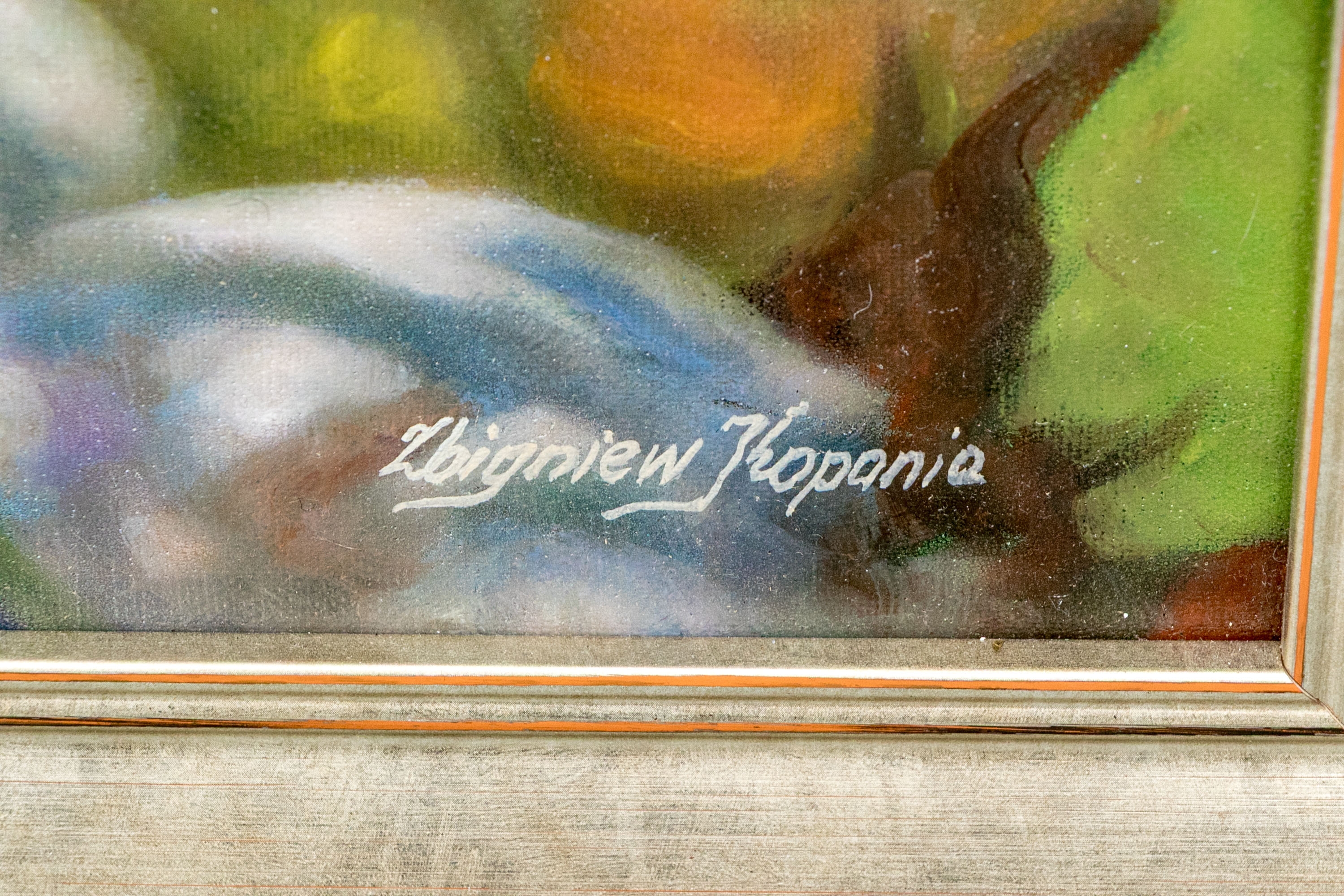 Zbigniew Kopania (Polish, B. 1949) Large Oil On Canvas Floral Painting