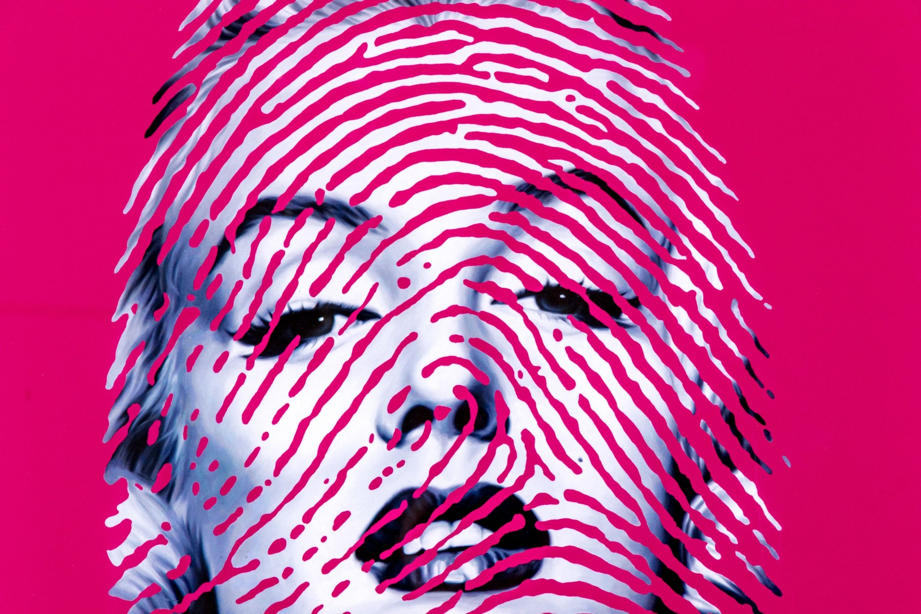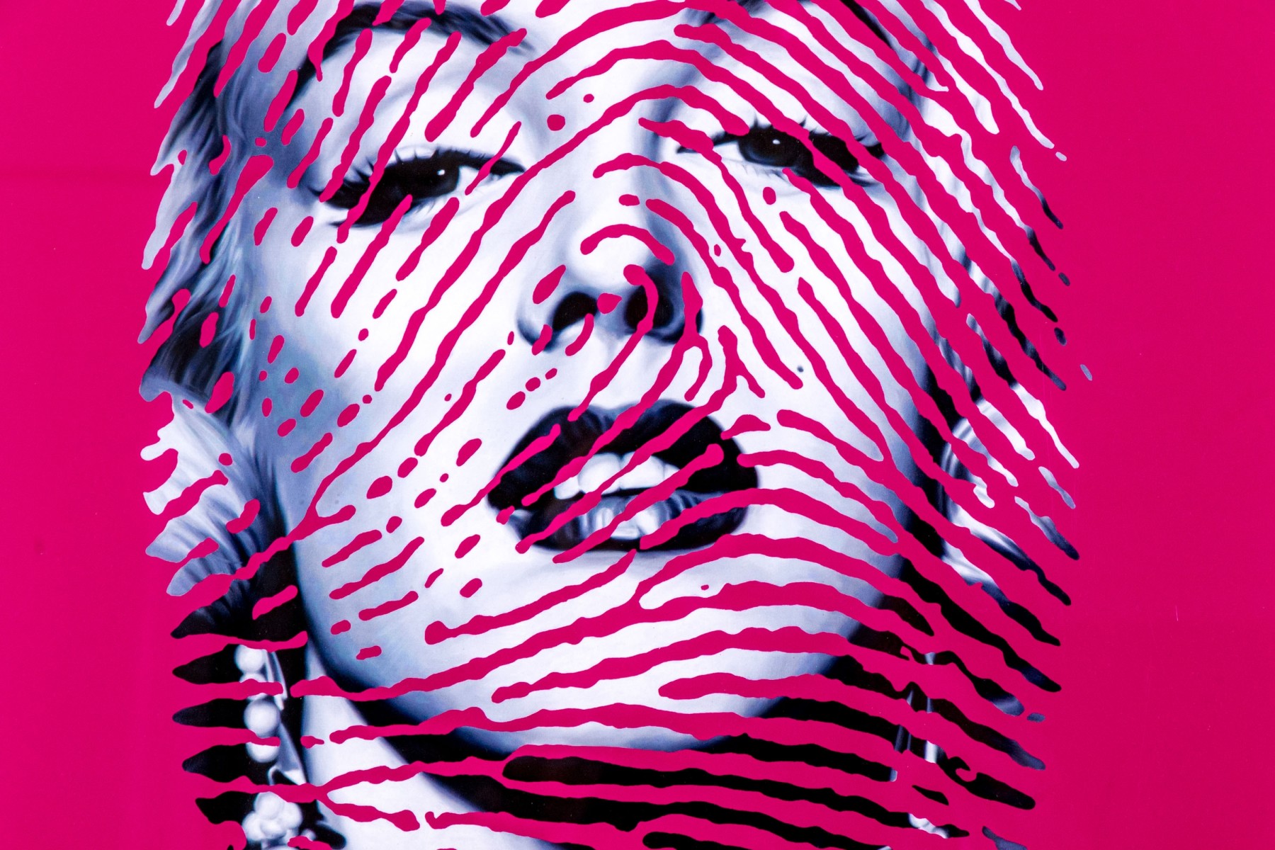 Depicting the iconic Marilyn Monroe, presented against pink background.